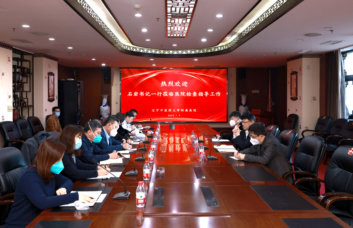1月9日上午,辽宁中医药大学党委书记石岩、副校长戴旭、党政办公室主任袁佺一行到辽宁中医药大学附属医院调研指导工作。医院党委书记闫海军,党委副书记、院长吕静,医院领导班子成员参加会议。