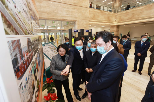 在新门诊综合楼——国家中医药传承创新工程项目,闫树江与吕晓东亲切交谈,现场听取了附属医院的发展历程、人才培养、重点专科以及取得的成就等情况。共同回顾了援沪期间医疗救治工作的难忘经历,充分肯定了中医救治的“辽宁模式”。希望医院持续提升国家中医药传承创新中心内涵建设,成为“医产学研用”紧密结合的中医药传承创新高地。